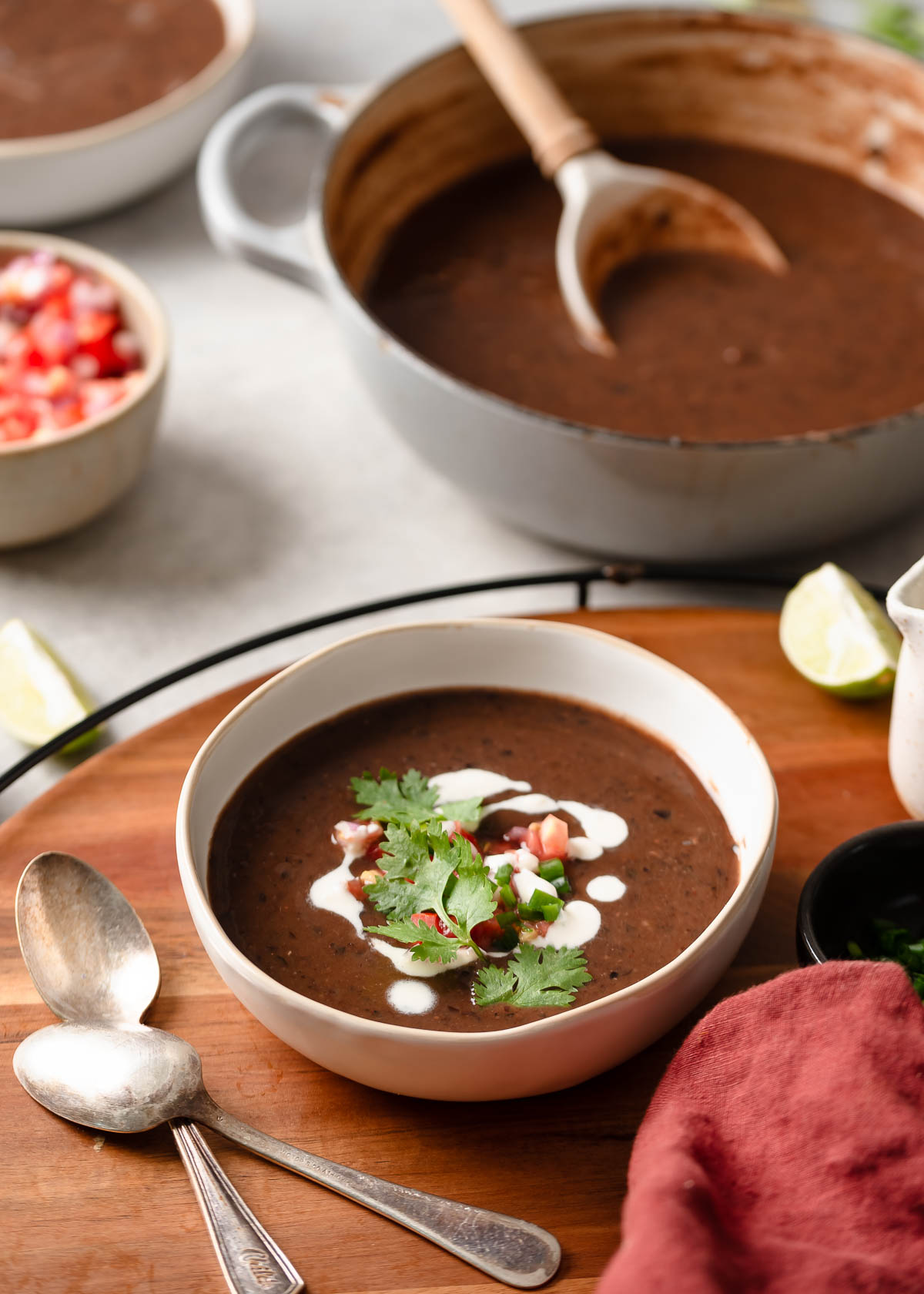 This spicy black bean soup is packed with bold flavors and the perfect balance of heat and heartiness. Hereโs what Iโm cooking this soup with: